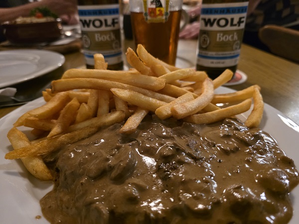 RÜDENHAUSEN – Es hat mal wieder geklappt: www.mainfranken.news Vielschreiber Michael Horling und seine alles fotografierende Partnerin Petra Moritz haben im Brauerei-Gasthof Wolf in Rüdenhausen (zwischen Wiesentheid und Castell im Landkreis Kitzingen) mal wieder ein neues Gericht entdeckt.