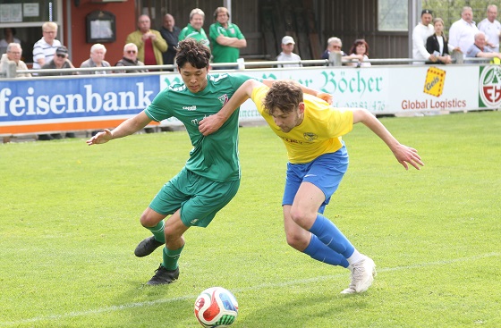 Danach viel Kampf, aber auch viel Leerlauf und Krampf. In der Schlussphase der ersten Hälfte noch zwei gute Möglichkeiten für die Hausherren. Den Schuss von Leon Holzheid wehrte Noah Mack glänzend ab und Ralf Riedlmeier klärte die Situation. Danach rettete erneut Noah Mack den knappen Vorsprung gegen den Schuss aus kurzer Entfernung von Fabian Bergmann in die Pause.