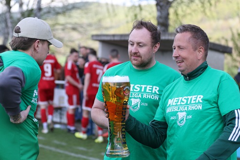 Das klare Riedenberger 4:0 gegen Rottershausen (mit zwei Toren von Kevin Lormehs sorgt nun für einen Vierkampf um Platz zwei, in dem der FC Thulba (spielfrei am Wochenende, weshalb Trainer Marius Kubo bei seinem Schwager Andreas Graup in Ramsthal zuschaute, der mit dem FC Westheim noch nicht Meister wurde – Bericht dazu folgt auch noch auf www.mainfranken.news) die besten Karten hat. Vor Riedenberg, dem TSV Wollbach (3:0-Sieger im Derby vor 300 Zuschauern gegen Steinach mit zwei Toren von Paul Hahn) und sogar noch dem TSV Ostheim trotz dessen nur 1:1 gegen Salz/ Mühlbach.