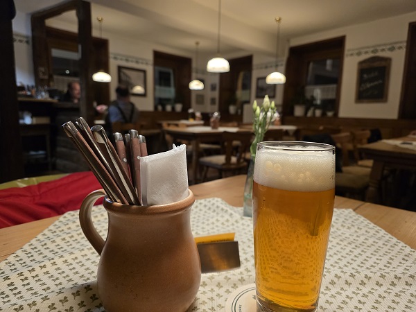 Letztlich war das Putenschitzel die richtige Entscheidung und jeweils ein Teil davon wanderte in die mitgebrachte Box zum mit nach Hause Nehmen für den nächsten Mittag. Gut so, wenn man abends etwas weniger isst und dafür sich danach mal das Kochen sparen kann. Die Bockbiere haben die beiden Gäste aus dem unterfränkischen Landkreis Schweinfurt jedoch gleich ausgetrunken.