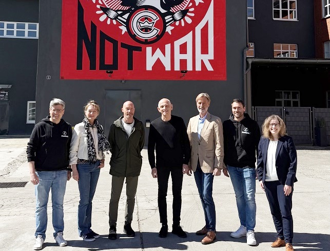 Auf dem Foto beim Pressegespräch – v.l.: Andreas Leikeim, Angelika Reng (SÜC), Stefan Eichhorn (HUK-COBURG), Wolfgang Heyder (VSB), Hans-Peter Langsch (Kulturfabrik Cortendorf), Andrei Stirbati (Leikeim) und Sandra Brunnbauer (VSB).