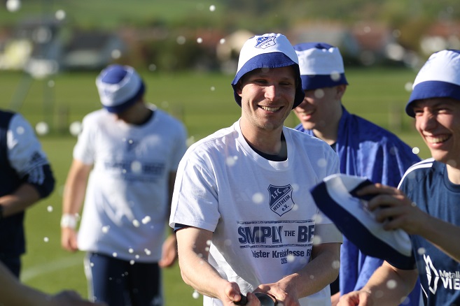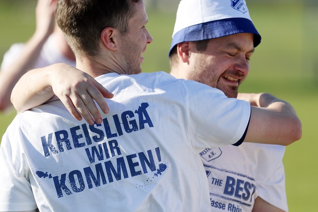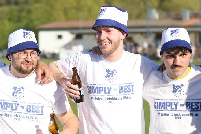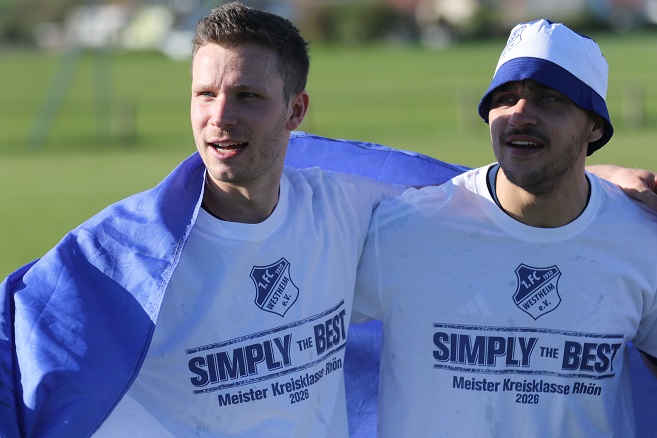Nun ja, diese Saison deutete sich das ja eigentlich schon frühzeitig an. Erest letzte Woche in Ramsthal kassierte das Team seine erste Niederlage überhaupt. Dagegen stehen ein 10:0-Sieg gegen Waldberg, ein 9:0 im Derby gegen Diebach oder das 8:0 gegen Reitersweisen/ Arnshausen. Die Meisterschaft und der Aufstieg des FC Westheim war nur eine Frage der Zeit. Sie sind „Simply the Best“, was auch auf den Aufstiegs-Shirts so verewigt ist.