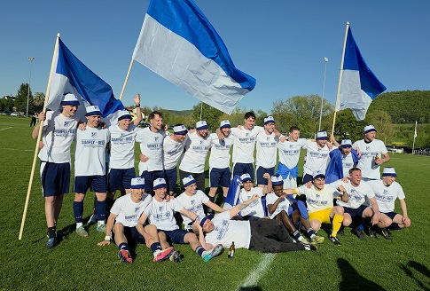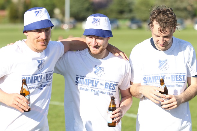 Und danach wurde gefeiert. Mit ein wenig angezogener Handbremse, wie das so üblich ist, wenn ein Triumph schon lange mehr oder weniger feststeht. Ein paar schöne Bilder kamen dennoch zustande, www.mainfranken.news war ja live dabei und zeigt auch einen kleinen Film über den Jubel.