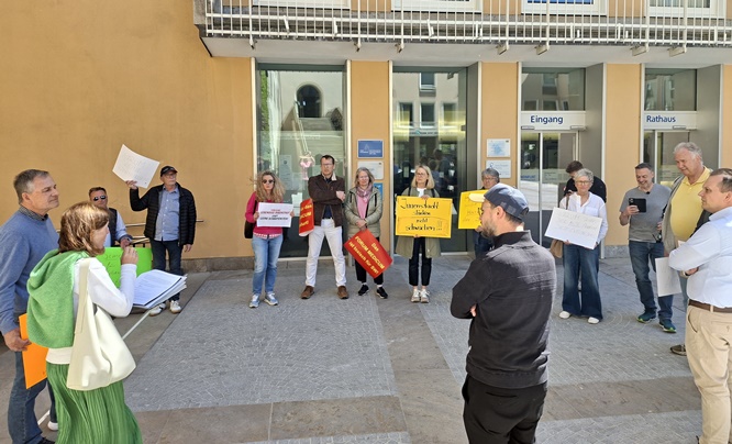 SCHWEINFURT – Auch die Protestaktion vor dem Rathaus am Dienstag vor Beginn der Stadtratssitzung hat nichts geholfen. Ein paar Händler aus Schweinfurt wiesen die in den Sitzungssaal laufenden Stadträte zwar darauf hin, dass eine Neukonzeption der Stadtgalerie die Innenstadt schädigen könnte.
